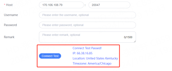 Username and password authentication: When you choose this authentication method, you need to fill in the obtained proxy address, subaccount username and password when configuring the proxy.