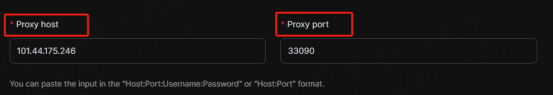 3.2 IP Whitelist: Fill in the text fields of Proxy Host and Proxy Port as shown below