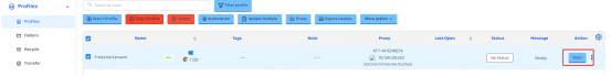 6. In the "Profile Management" tab, you will see the profile you created. Press the "Open" button to start the browser profile.