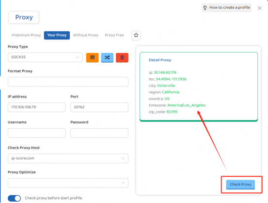 4. Click the "Check Proxy" button to check if the proxy is working properly