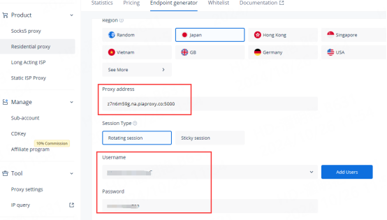 If you have already purchased a residential proxy, you can get the proxy IP in the Residential Proxy-EnEndpoint Generator section of the Personal Center