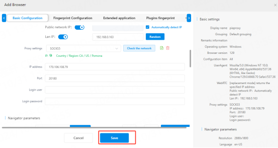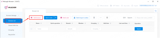 1. Click the "Browser Management-Browser List" button in the main screen, click "Add Browser" to enter the profile settings page.