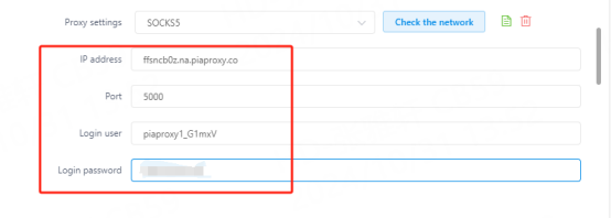 • Username and password authentication: When you choose this authentication method, you need to fill in the obtained proxy address, subaccount username and password when configuring the proxy.