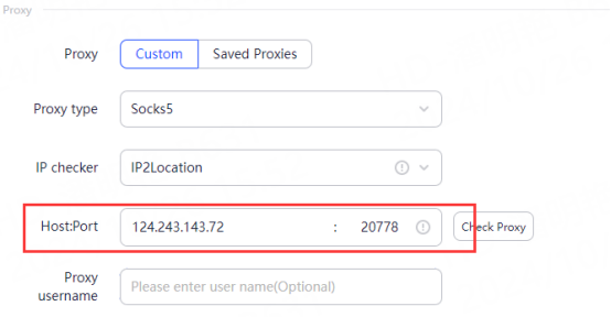 3.2 IP Whitelist: Fill in the text fields of Proxy Host and Proxy Port as shown below