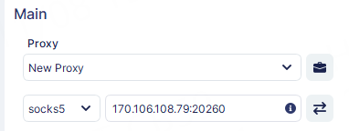 2. In the "Proxy Type" section, press the drop-down menu and select HTTPS, HTTP, or Socks5 protocol