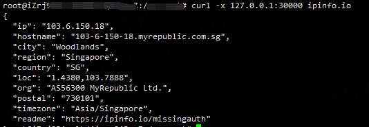 curl -x 127.0.0.1: assigned port ipinfo.io