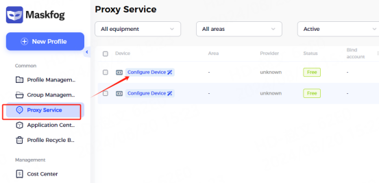 2. Click proxy service, click configuration management