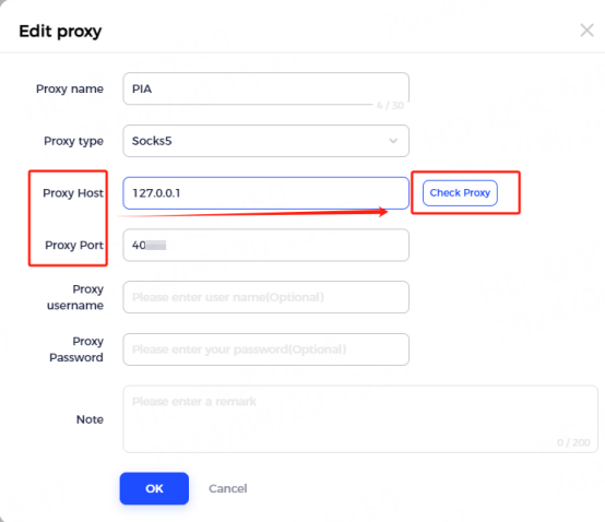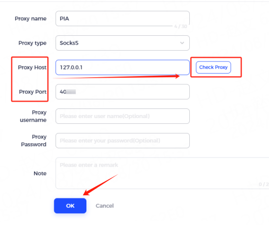 4. You need to fill in the proxy information [the proxy host refers to the local IP and extraction port in the client]
