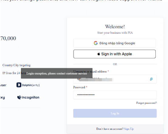 As shown in the figure, if the login interface prompts "Login abnormality, please contact customer service",