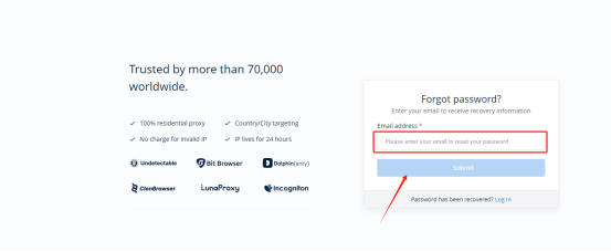 Enter the email address you used to register your account and click Submit.