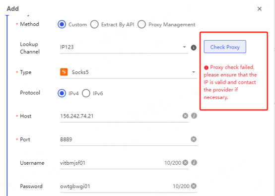 If the following results appear: It means that the proxy cannot be connected.