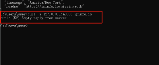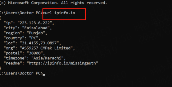 (2) Enter the test command: curl ipinfo.io to detect that your local environment is not in mainland China